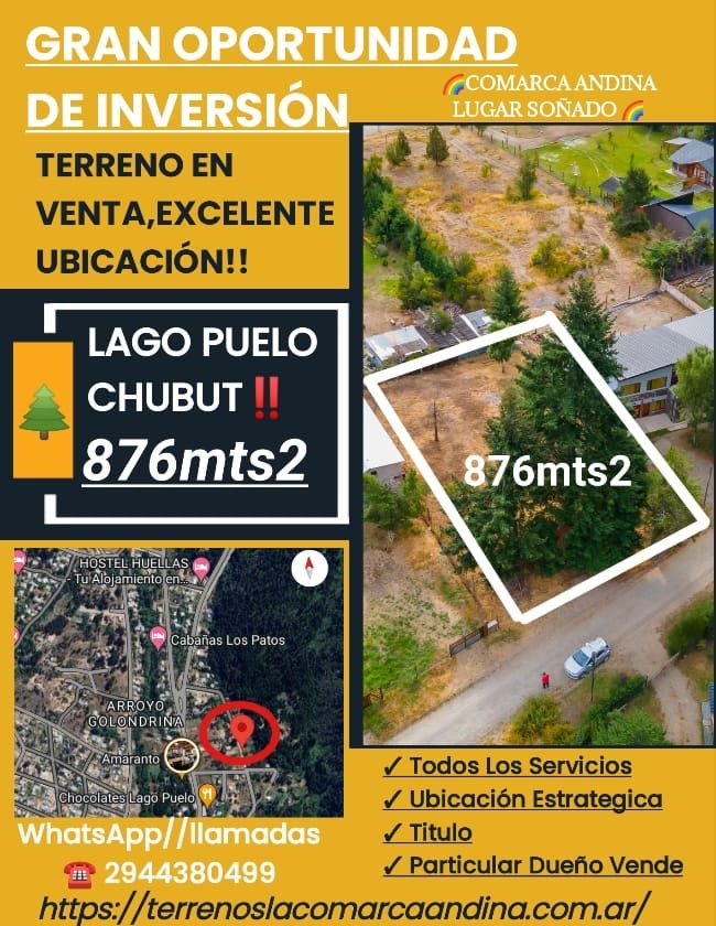 Dueño vende terreno de 876 mts2 en Lago Puelo, Chubut.